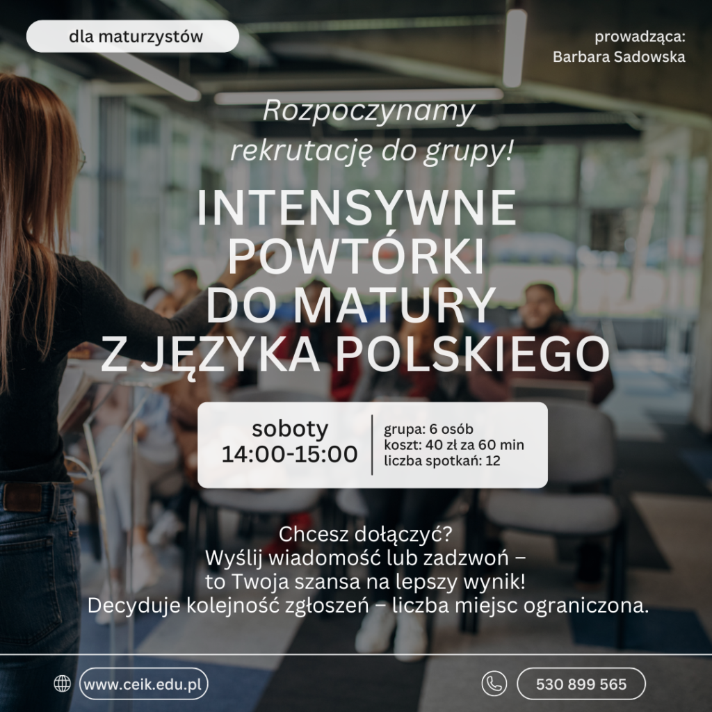 Ostatni dzwonek na zapisy na intensywne powtórki do matury z języka polskiego! STACJONARNIE W CZĘSTOCHOWIE!